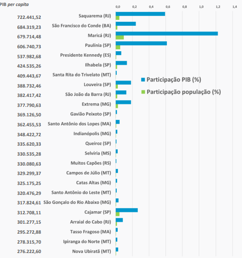 25 municípios do Brasil com maior PIB per capita em 2023 / Fonte: IBGE